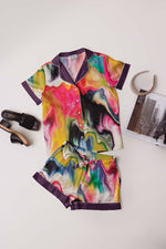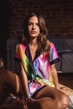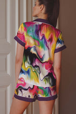 The Shanaya collection was designed to counteract the dark, cold and lingering winter months, and to instead surround us with the warmth of excitement, festivity and friendship. The Shanaya's marbled technicolor print is vivacious, showstopping and yet hypnotic, as a result of the calming ebbs and flows of this swirling mix of color.