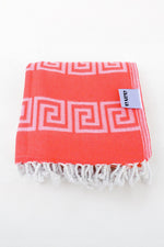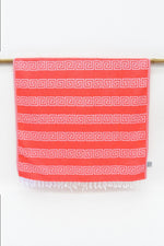 Our elegant ‘Lunara’ beach towel comes in two color ways: powder gray and white, or true pink, not out of place in Malibu or The Hamptons.