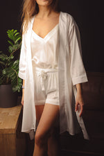 Throw our robes with contrast piping over our dresses or short sets, or day wear