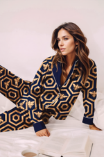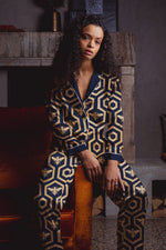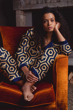 Hey Queen Bees - this one's for you! Our Colbee collection symbolises community, brightness & power. Offset against a geometric, interlocking beehive print, this print has a fabulously Art Deco vibe.