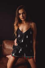 Bringing a modern, and sophisticated twist to the classic Holiday themed prints. This collection features monochromatic hand-sketched Christmas trees, offset against a warm plaid. What a vibe!