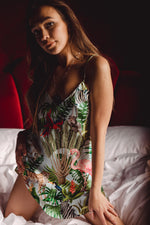 Travel with us to the serene, yet vibrant rainforests of Central America with Suri's scenic print, offset with pops of bold leo. This collection is classically elegant, and beautifully detailed.