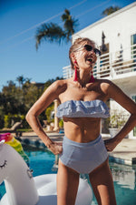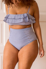 The one for any occasion. The two-piece features a high-waisted bikini bottom that’s here to make your curves look great. The bandeau style top has removable straps and ruffles that remind us of the ocean’s lulling waves.