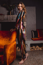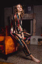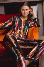 Our distinctive Novah collection is unique thanks to its collation of bright colors and animal prints, showcased alongside an elegant, sleek black overlay. Our designer created a layered, textured print, coated over with black, and then brushed away portions of the print to create this fantastic peek-a-boo effect. The cumulative look is definitely elegant and sleek with a touch of wild child.