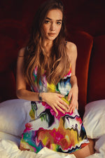 The Shanaya collection was designed to counteract the dark, cold and lingering winter months, and to instead surround us with the warmth of excitement, festivity and friendship. The Shanaya's marbled technicolor print is vivacious, showstopping and yet hypnotic, as a result of the calming ebbs and flows of this swirling mix of color.