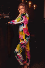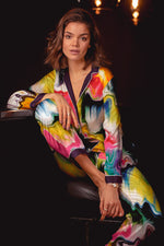 The Shanaya collection was designed to counteract the dark, cold and lingering winter months, and to instead surround us with the warmth of excitement, festivity and friendship. The Shanaya's marbled technicolor print is vivacious, showstopping and yet hypnotic, as a result of the calming ebbs and flows of this swirling mix of color.
