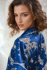 Adah features our iconic hand-drawn zebra starry night print on cobalt blue. We named this collection Adah as it means beautiful, and that's exactly what we felt when we first saw this collection. Overall, this collection exudes elegance, and is equally striking and head turning - a favorite of all time!